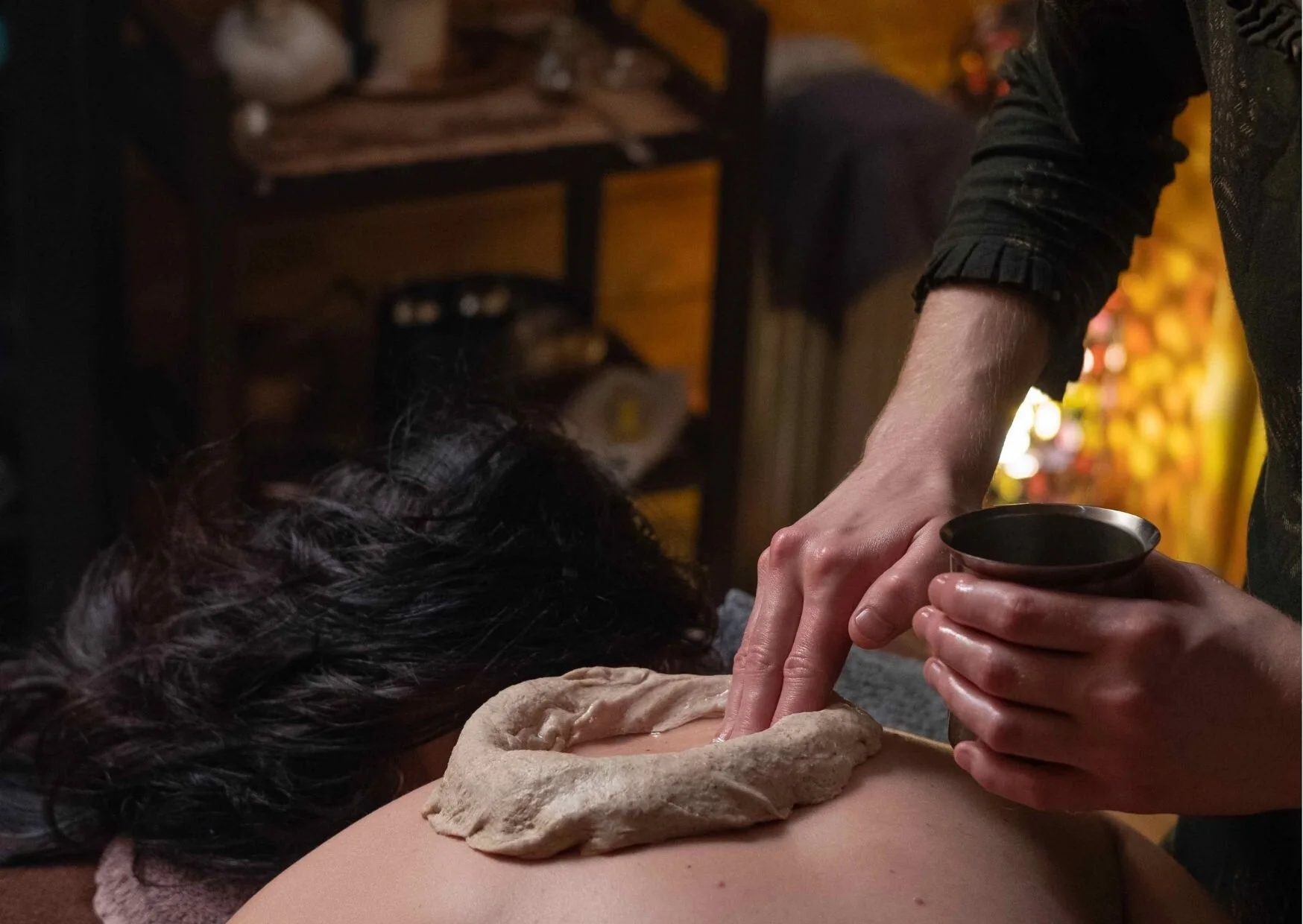 Healing Abhyanga- A healing Nepalese incense is crushed in warm sesame oil for a therapeutic effect.